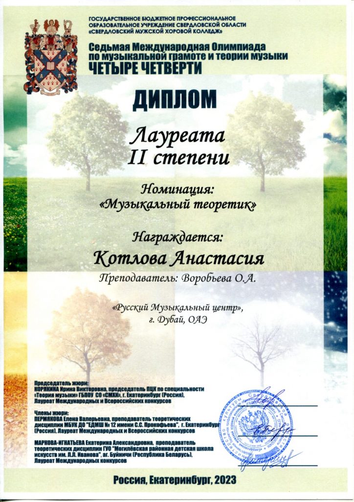 7th International olympiad in music literacy and theory of music “Four Quarters”
